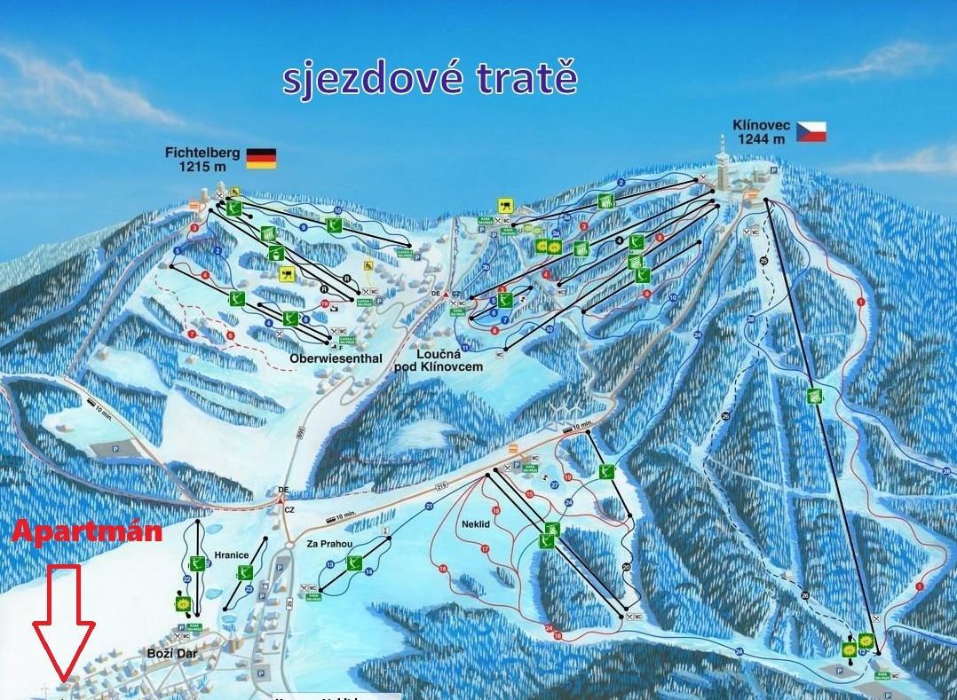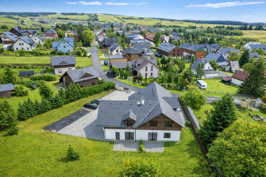 Ráj zimních sportů, procházek a cyklistiky přímo za dveřmi: pár metrů od domu naběhnete na běžkařskou Krušnohorskou magistrálu (120 km upravovaných tras), když není sníh najedete na stejném místě na cyklostezku, nebo se půjdete projít malebnou stezkou Božídarského rašeliniště. Celoročně můžete vzít své ratolesti na dobrodružnou Ježíškovu cestu. To vše máte pár kroků od domu s nádherným výhledem.